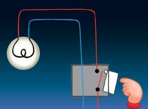 當家裡牆壁內的電線,連接到燈具與開關上,按下開關,電線被接通後,就能提供電力給電燈使用,燈就會亮。